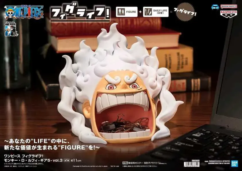 ☆ Artículo: Figura original de Monkey D. Luffy: Gear 5 Ver. Vol. 3, de la línea FigLife, de Banpresto. Se puede utilizar para colocar accesorios pequeños como clips, sujeta papeles, bandas elásticas o joyas en el escritorio. Accesorios no incluídos.