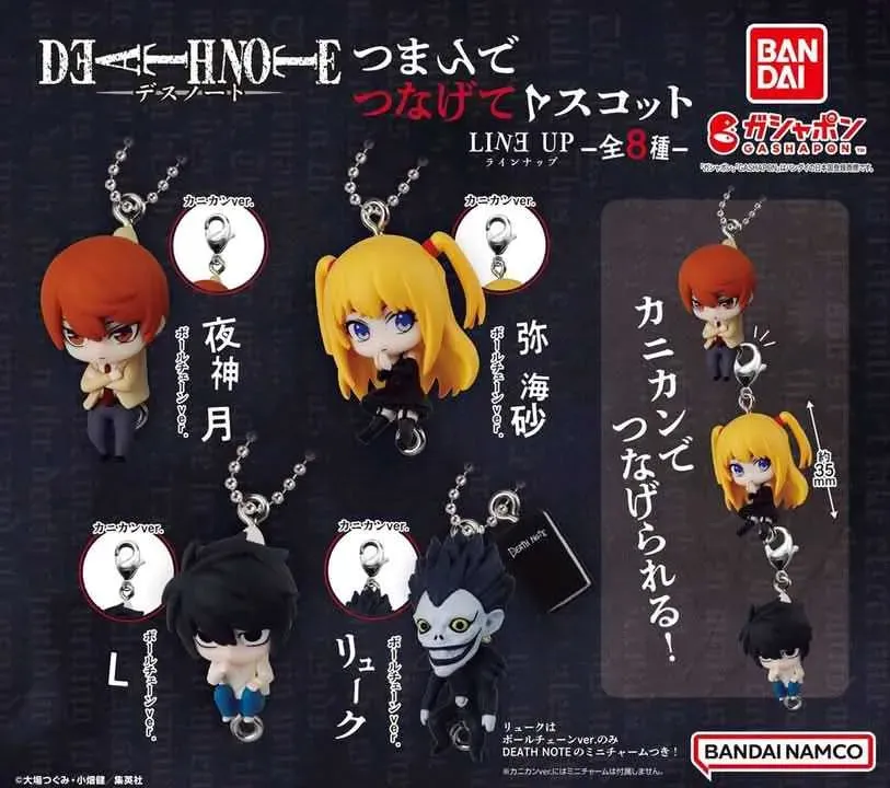 ☆ Artículo: Set de 4 mini charms (colgantes) de Gachapon (Toy Capsule), originales de DEATH NOTE, de la línea Pinch and Connect. Algunos traen cadenita y otros traen ganchito para poder conectarlos.